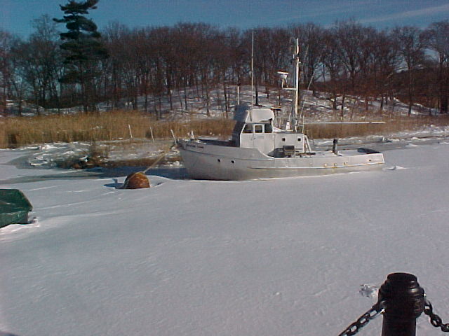 The Kristen Lynn in the winter ice, Neponset River, Milton and Dorchester line